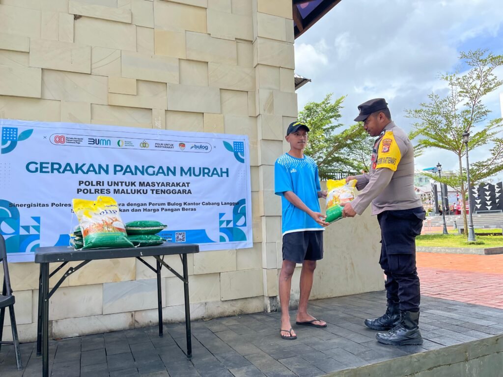 RAKYATMALUKU.CO.ID — LANGGUR — Sebanyak 100 pack beras SPHP Bulog kemasan 5 kilogram ludes terjual dalam kegiatan Gerakan Pangan Murah yang digelar Polres Maluku Tenggara (Malra) di dua titik, Senin, 11 Agustus 2025.